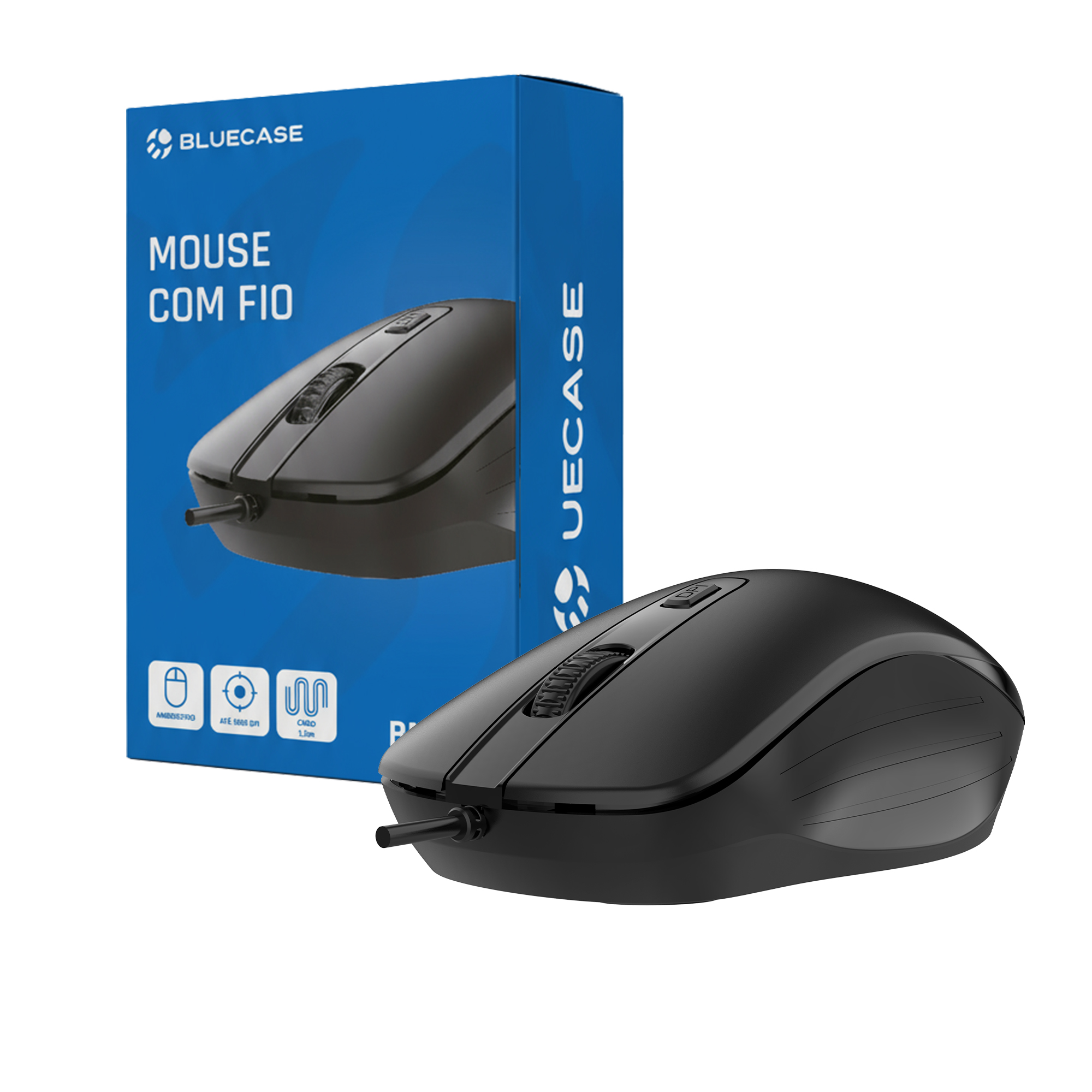 MOUSE USB PRETO BM111B BLUECASE – AMBIDESTRO / DPI 1200 – 1600 / 1.5M